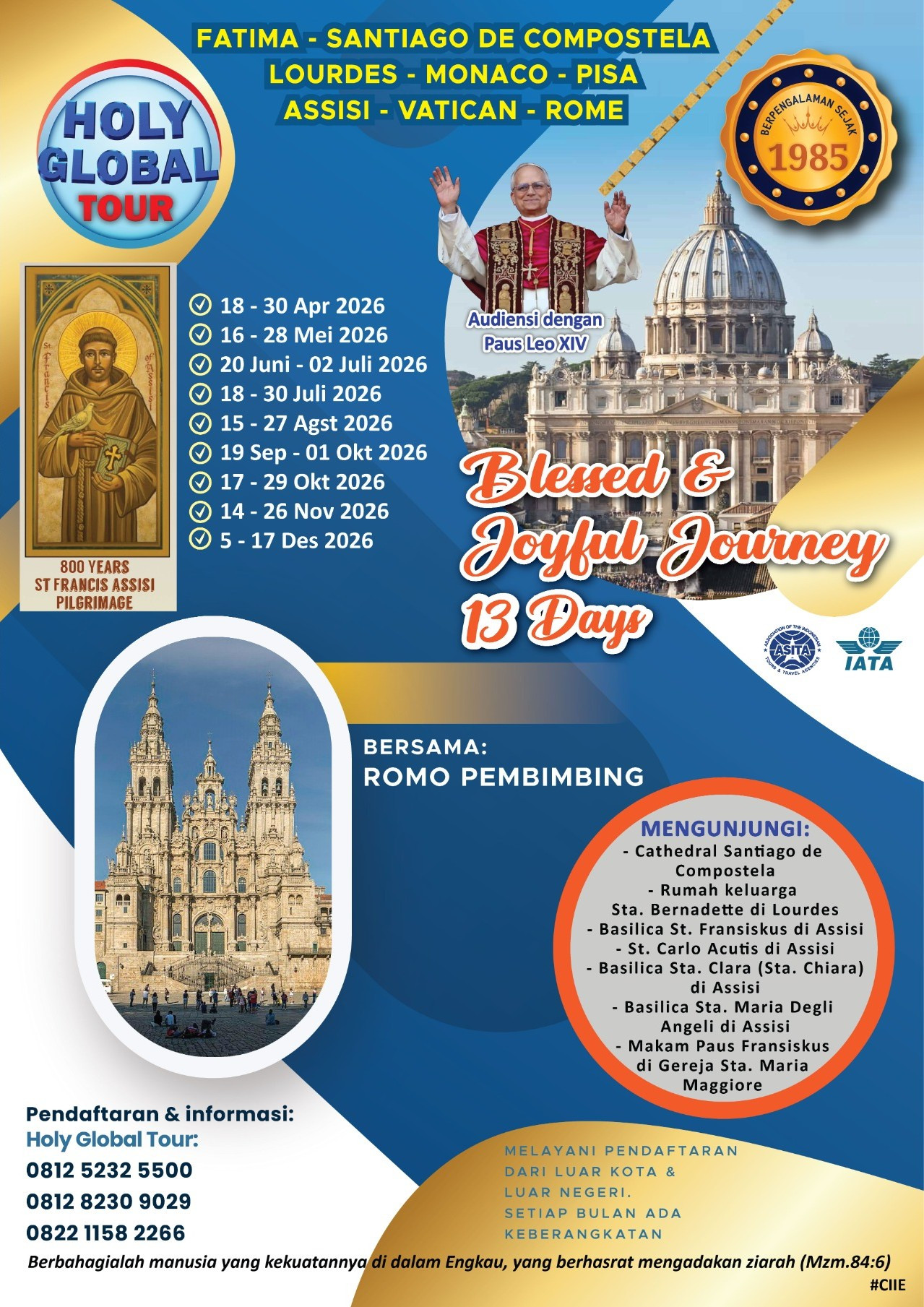 Hari ini kita diajak ke Vatican untuk Audiensi dengan Paus Leo XIV (Apabila Paus berada di tempat) di Bassilica St. Peter. Kemudian kita akan mengunjungi Basilica St. Paul Outside The Walls. Kemudian kita diantar ke Airport untuk penerbangan kembali ke Jakarta.