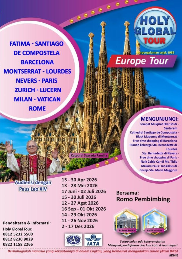 Hari ini mengunjungi Vatican untuk Audiensi dengan Paus Leo XIV di Basilica St. Peter (jika Paus berada di tempat). Kemudian mengunjungi Gereja Sta. Maria Maggiore untuk melihat Makam Paus Fransiskus. Selanjutnya photo stop di Colosseum dan Trevi Fountain. Kemudian menuju Airport untuk penerbangan kembali ke Jakarta.