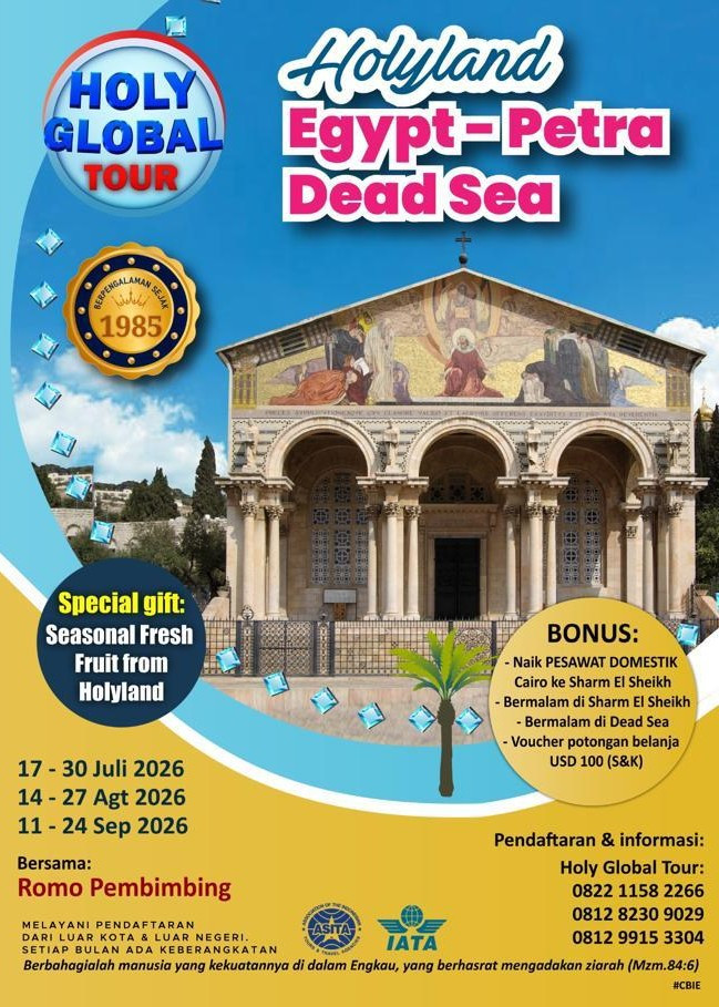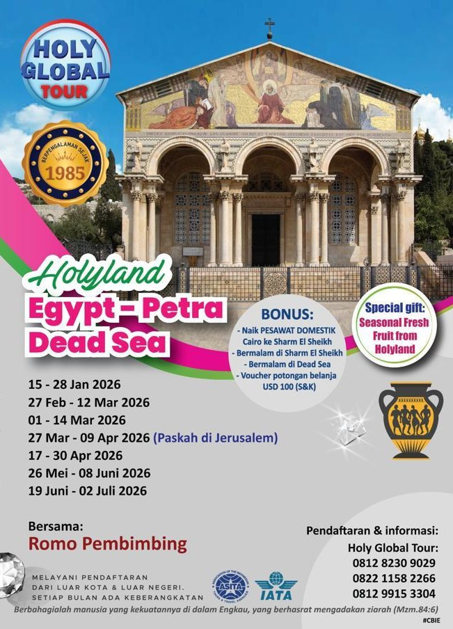 Kita bersyukur untuk kesempatan indah kita terima dari Tuhan, boleh berziarah bersama. Kita berkumpul 3 jam sebelum keberangkatan di Terminal 3 (Gate 3) Bandara Soekarno-Hatta menuju Cairo, Mesir.